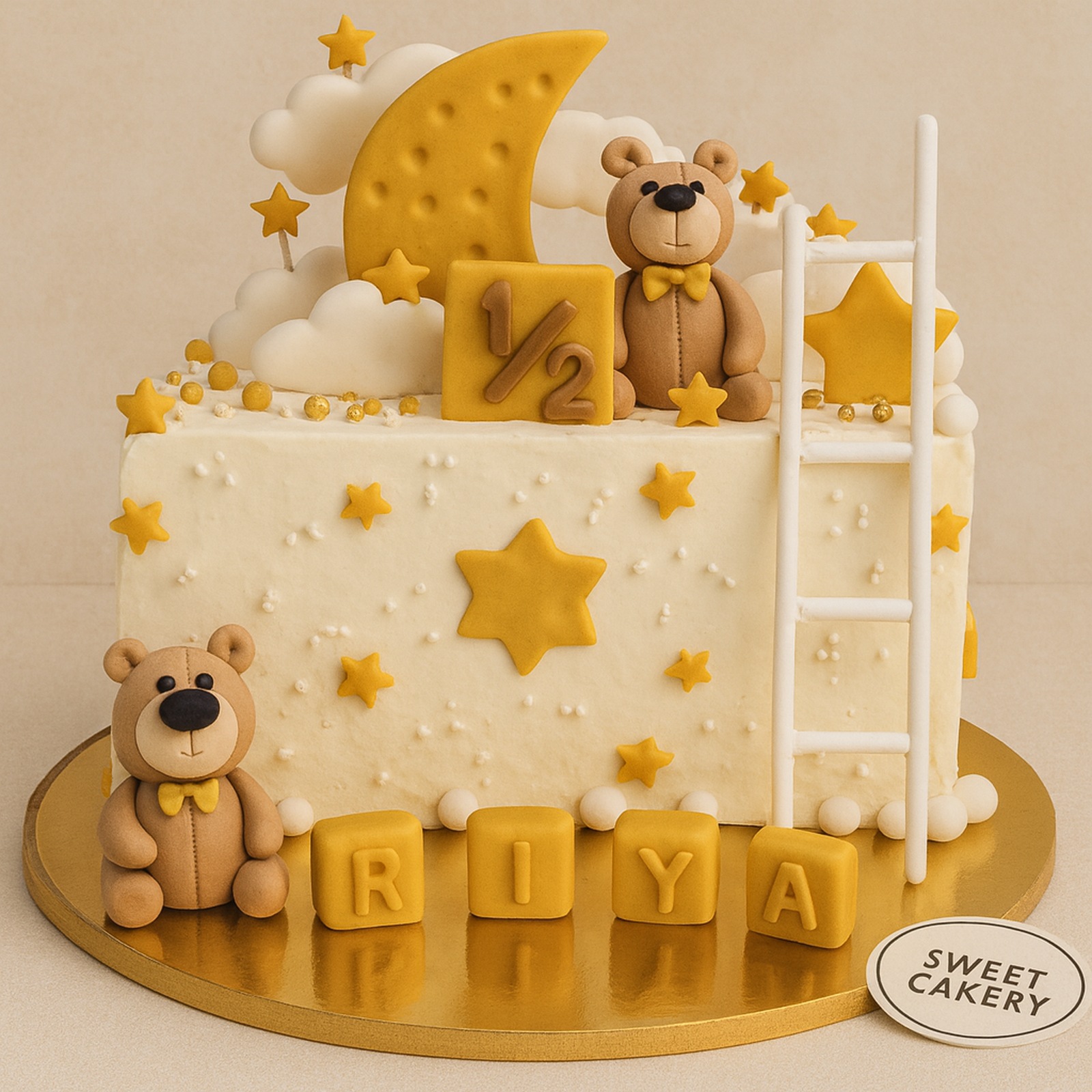 Mark your baby’s half-year celebration with this Six Months Birthday Cake with Cute Bears – a sweet and dreamy creation filled with charm.