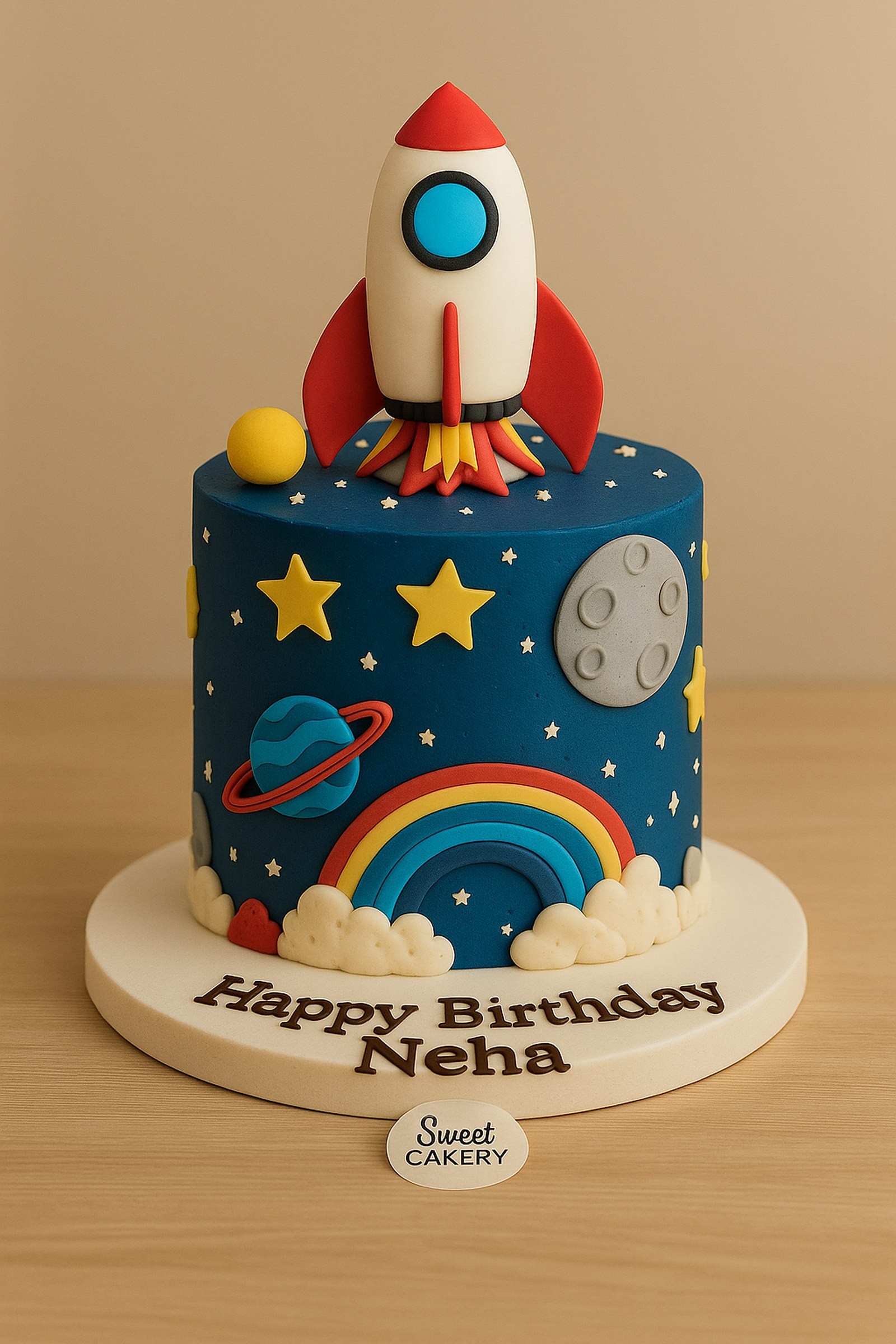Celebrate with our Space Theme Birthday Cake. 100% eggless, freshly baked, and delivered across Bangalore. Perfect for kids and galaxy lovers.